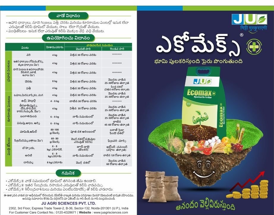JU ECOMAX+ is a next-generation, technologically advanced mycorrhizal bio-fertilizer enriched with bio-yield enhancers and endo-mycorrhizal consortia. It stimulates strong root and shoot growth while supporting rapid and effective microbial colonization in the soil.