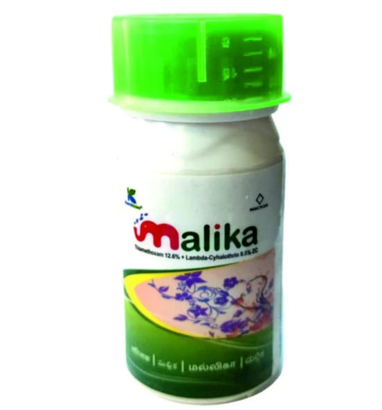MALIKA Insecticide is a potent blend of Thiamethoxam 12.6% and Lambda-cyhalothrin 9.5% ZC, designed to deliver rapid pest knockdown along with extended protection against a wide range of harmful crop pests.